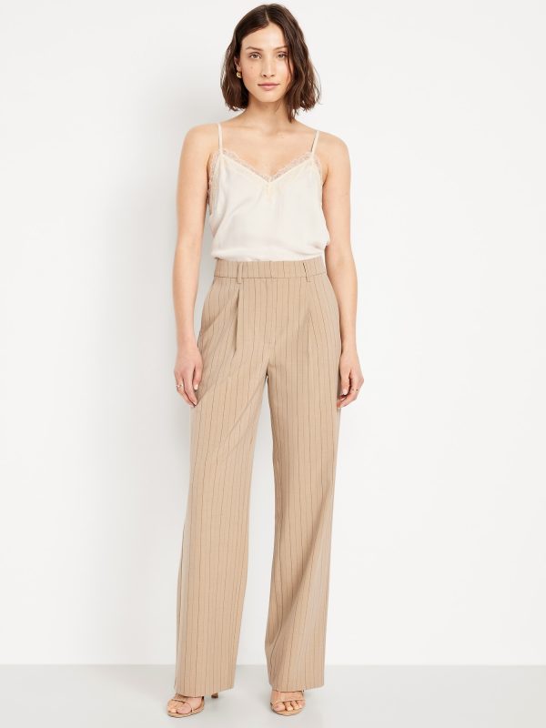 Extra High-Waisted Taylor Wide-Leg Trouser Pants: Tailored pleats. Loose fit. Don’t do 9-5 (or 5-9) without them.adjustable waistband, belt loops, hook-and-bar closure, zip fly, hip pockets, functional back welt pocket, wide leg, #791424