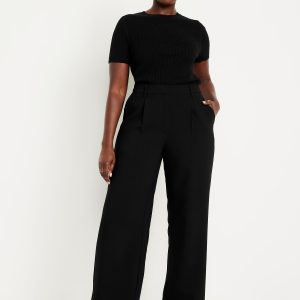 Extra High-Waisted Taylor Wide-Leg Trouser Pants: Tailored pleats. Loose fit. Don’t do 9-5 (or 5-9) without them.adjustable waistband, belt loops, hook-and-bar closure, zip fly, hip pockets, functional back welt pocket, wide leg, #791424