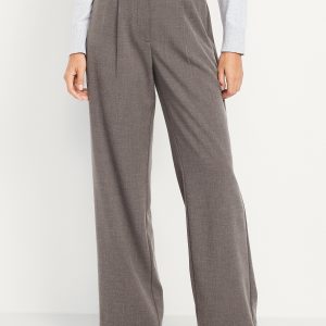 Extra High-Waisted Taylor Wide-Leg Trouser Pants: Tailored pleats. Loose fit. Don’t do 9-5 (or 5-9) without them.adjustable waistband, belt loops, hook-and-bar closure, zip fly, hip pockets, functional back welt pocket, wide leg, #791424