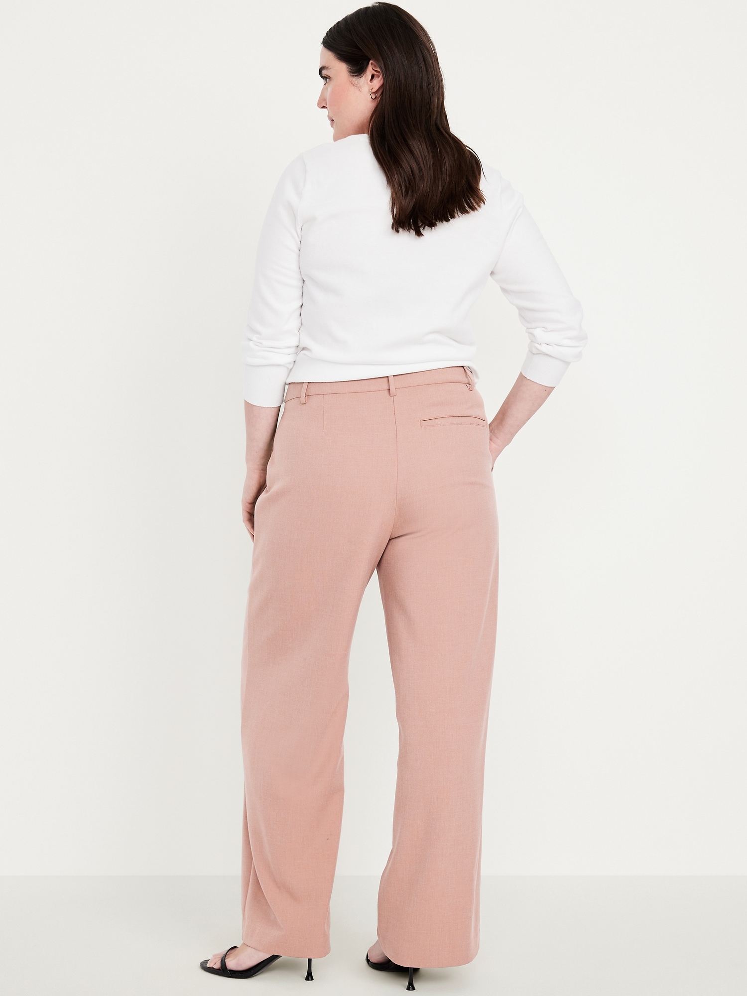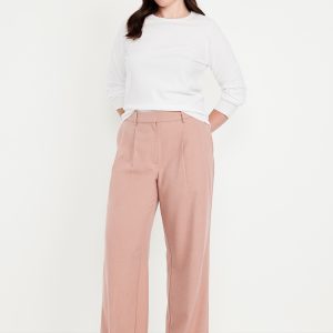 Extra High-Waisted Taylor Wide-Leg Trouser Pants: Tailored pleats. Loose fit. Don’t do 9-5 (or 5-9) without them.adjustable waistband, belt loops, hook-and-bar closure, zip fly, hip pockets, functional back welt pocket, wide leg, #791424