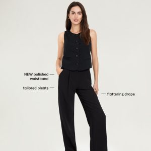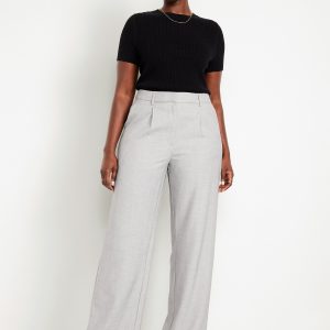 Extra High-Waisted Taylor Wide-Leg Trouser Pants: Tailored pleats. Loose fit. Don’t do 9-5 (or 5-9) without them.adjustable waistband, belt loops, hook-and-bar closure, zip fly, hip pockets, functional back welt pocket, wide leg, #791424