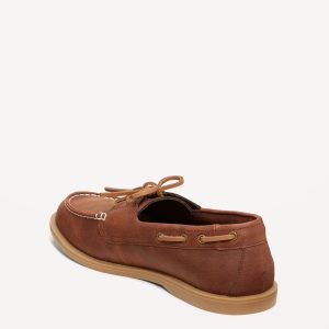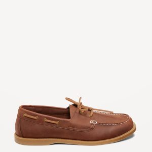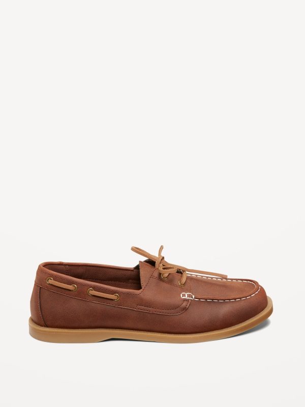 Faux-Leather Boat Shoes for Men: lace-front upper, textured outsole, easy slip-on style, #764162