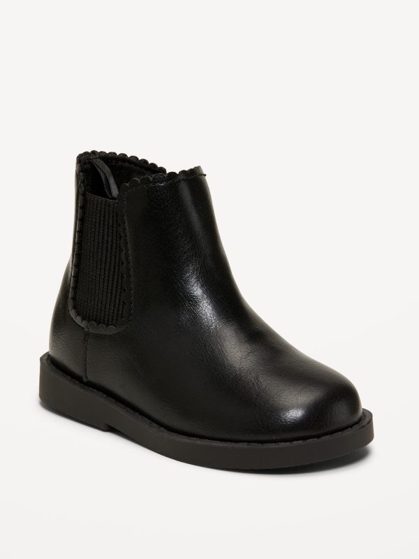 Faux-Leather Chelsea Boots for Toddler Girls: round toe, cushioned foot bed, rugged lug outsole, chunky heel, #804389