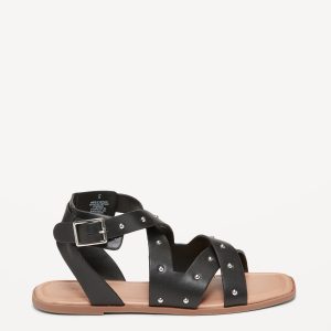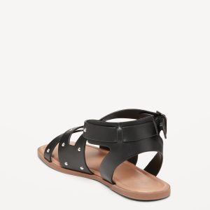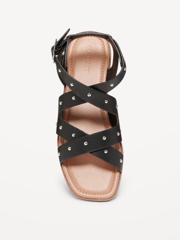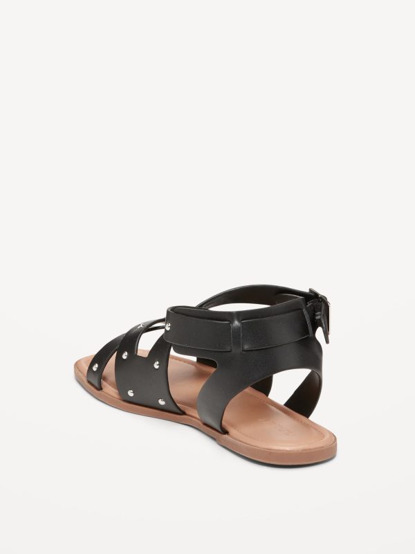 Faux-Leather Gladiator Sandals for Girls: buckled ankle strap, straps at foot, firm foot bed, textured outsole, #763026