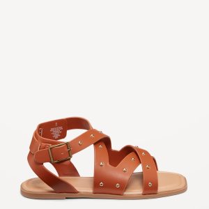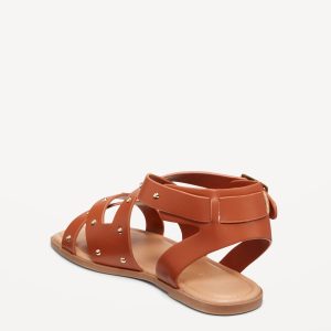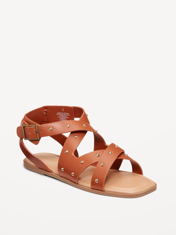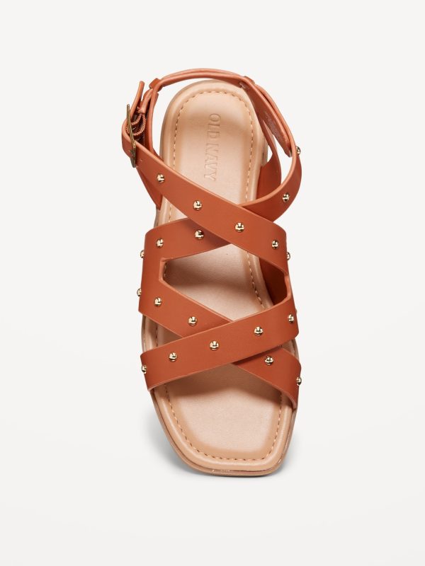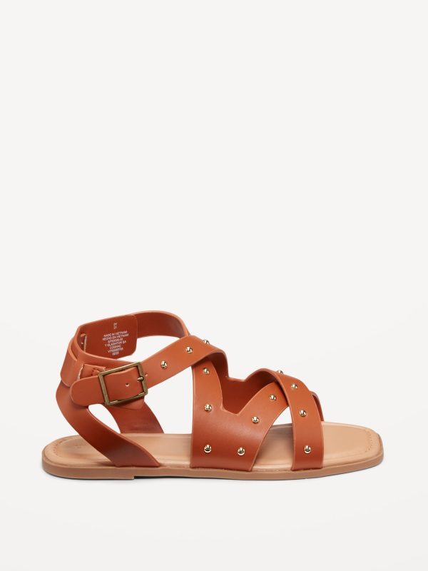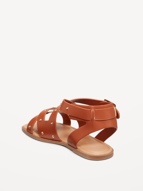 Faux-Leather Gladiator Sandals for Girls: buckled ankle strap, straps at foot, firm foot bed, textured outsole, #763026