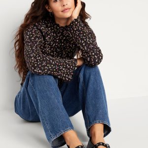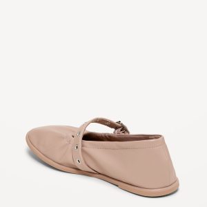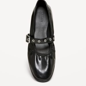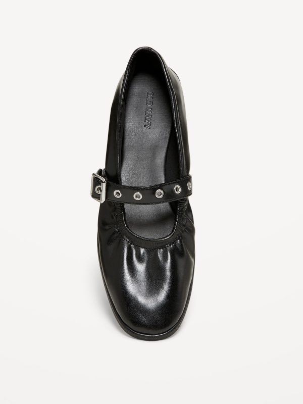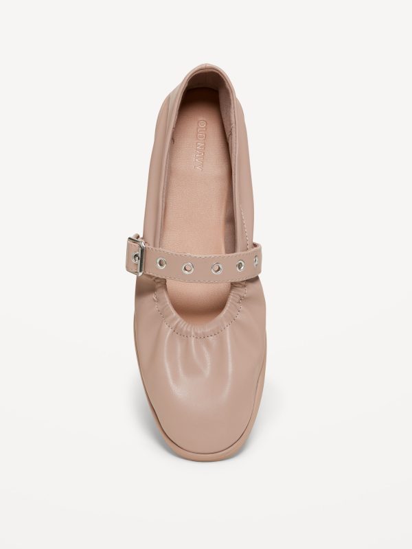 Faux-Leather Mary-Jane Scrunch Ballet Flats