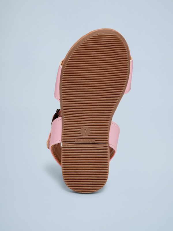 Faux-Leather Perforated Sandals for Toddler Girls: buckled adhesive secure close ankle strap, cushioned foot bed, perforated pattern across foot, open toe, #688770