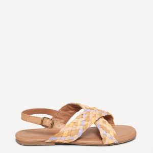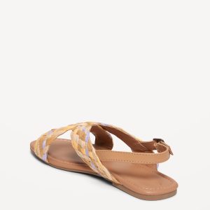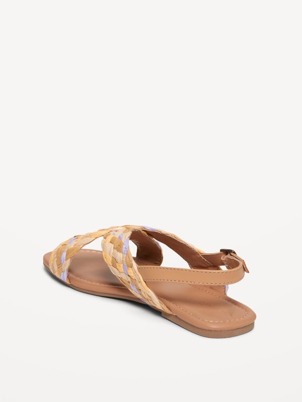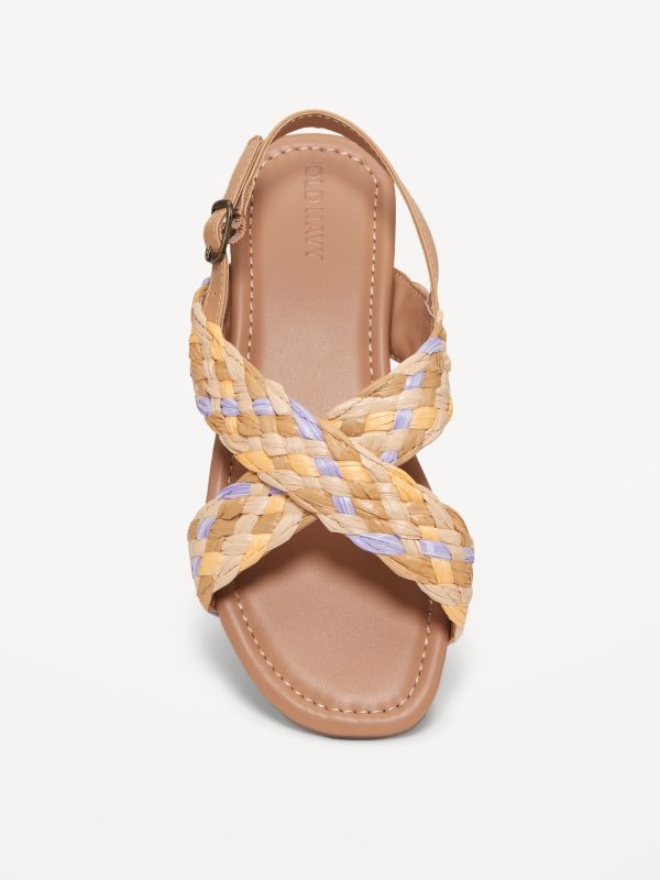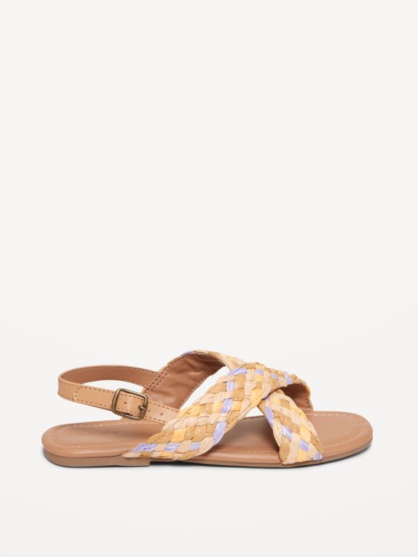Faux-Leather Raffia Cross-Strap Sandals for Girls