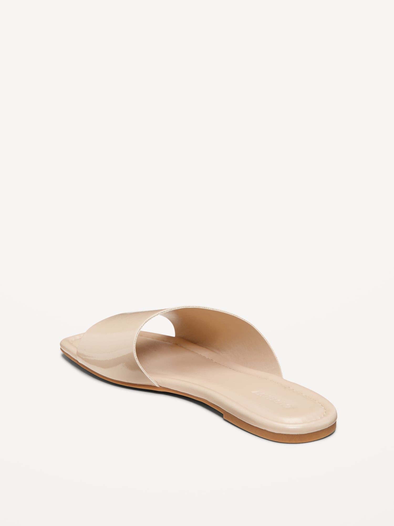 Faux-Leather Slide Sandals for Women: faux leather upper, square toe, cushioned foot bed, slide-on style, #766743