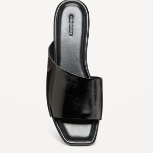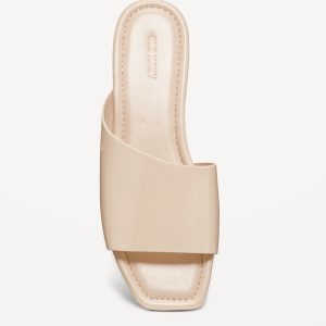 Faux-Leather Slide Sandals for Women: faux leather upper, square toe, cushioned foot bed, slide-on style, #766743