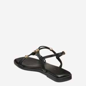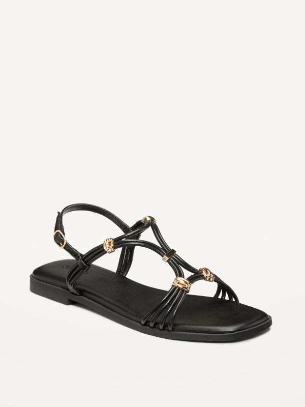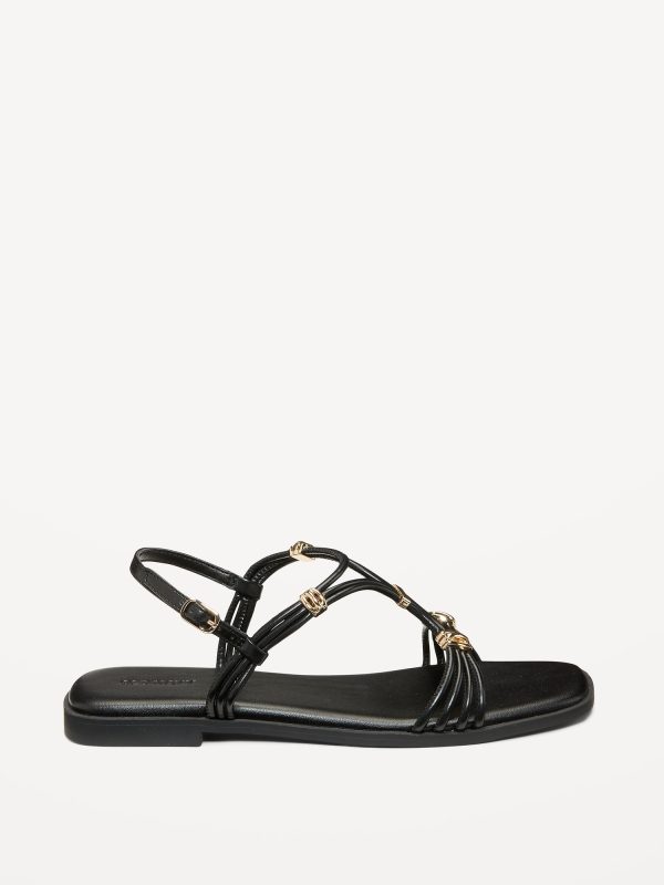 Faux-Leather Strappy Hardware Sandals