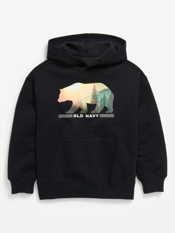 Favorite Fleece Oversized Logo-Graphic Pullover Hoodie for Boys: built-in hood, long sleeves, drop shoulders, kangaroo pocket, logo graphic at front, #799641