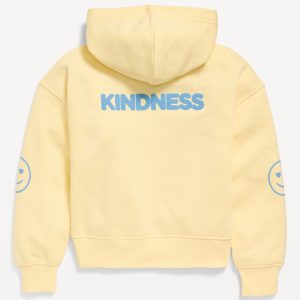Favorite Fleece Printed Zip-Front Hoodie for Girls: built-in hood, long wide sleeves, drop shoulders, full length zipper, banded hem, all-over print or graphic at front, #787762