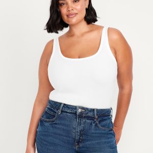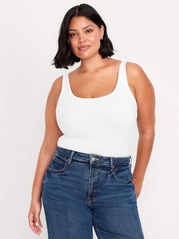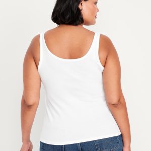 First-Layer Ribbed Scoop-Neck Tank Top
