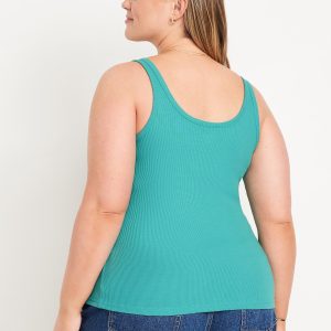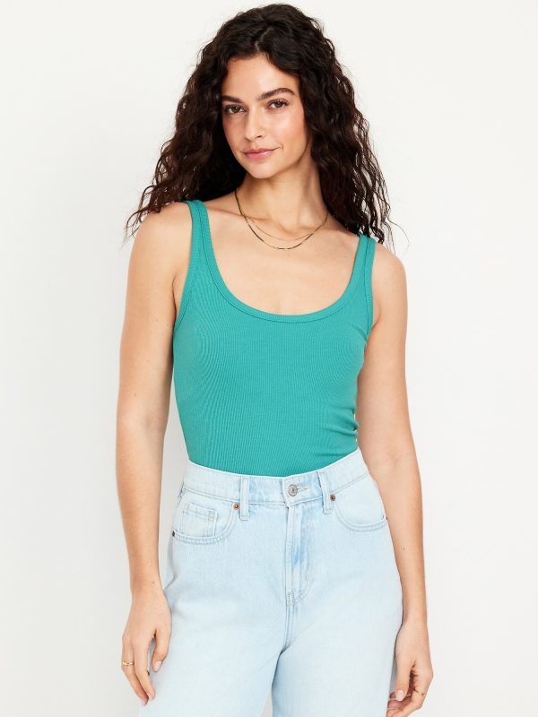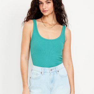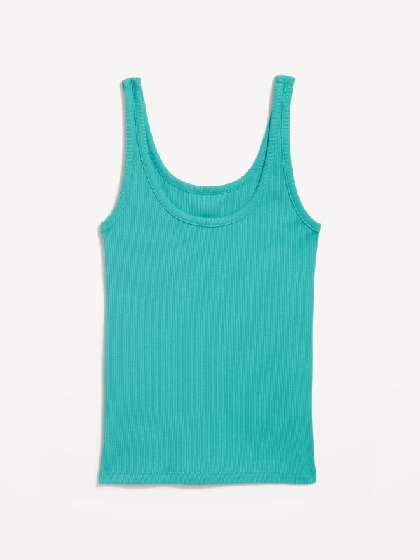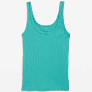 First-Layer Ribbed Scoop-Neck Tank Top: scoop neck, wide straps, #619927