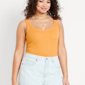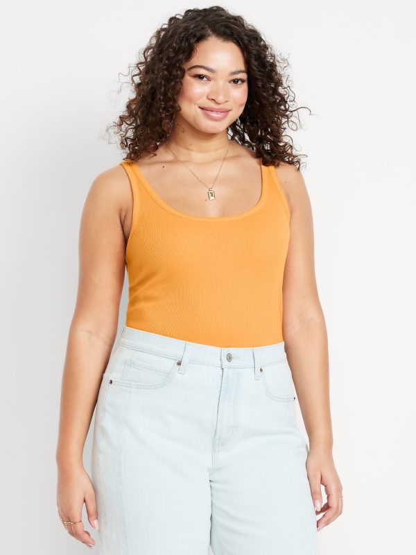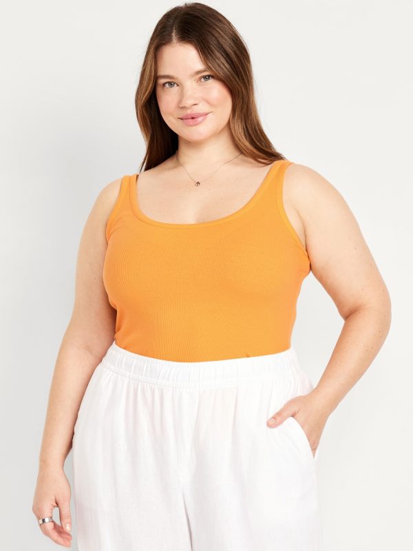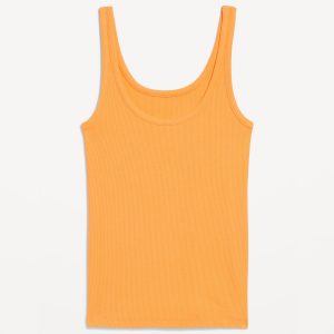 First-Layer Ribbed Scoop-Neck Tank Top
