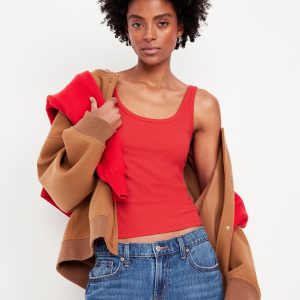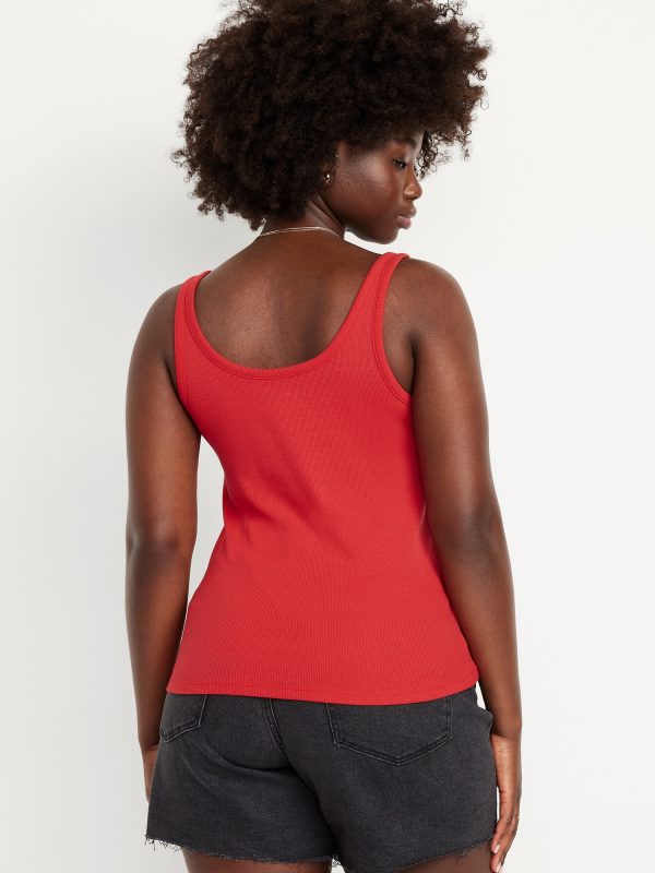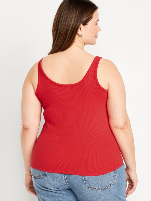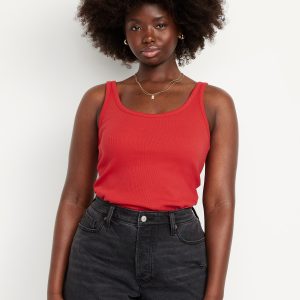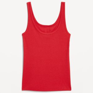 First-Layer Ribbed Scoop-Neck Tank Top: scoop neck, wide straps, #619927