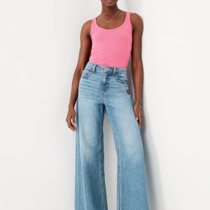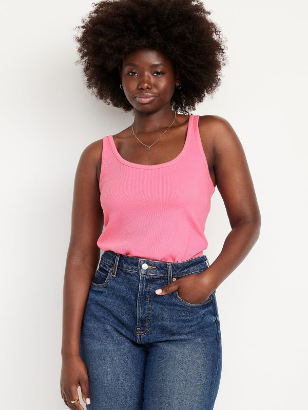 First-Layer Ribbed Scoop-Neck Tank Top