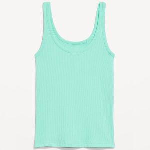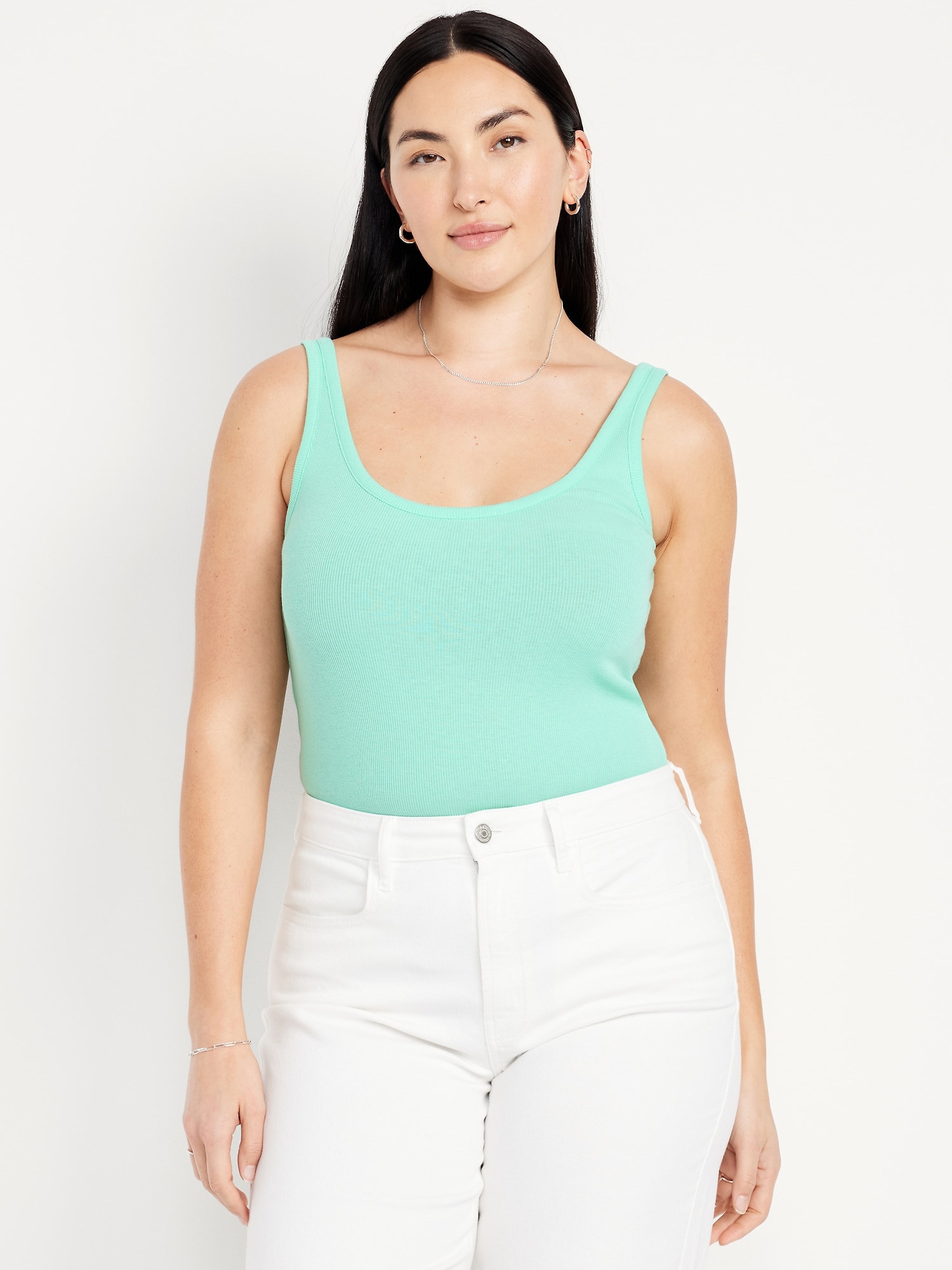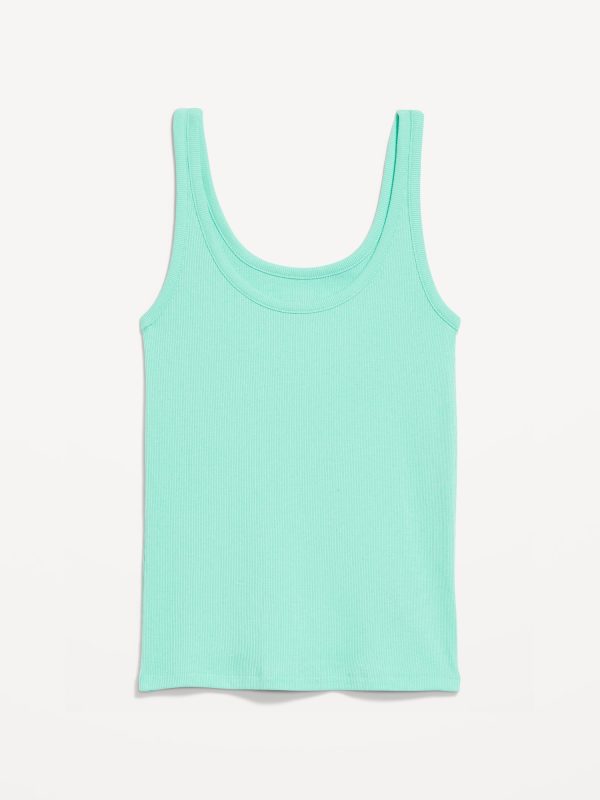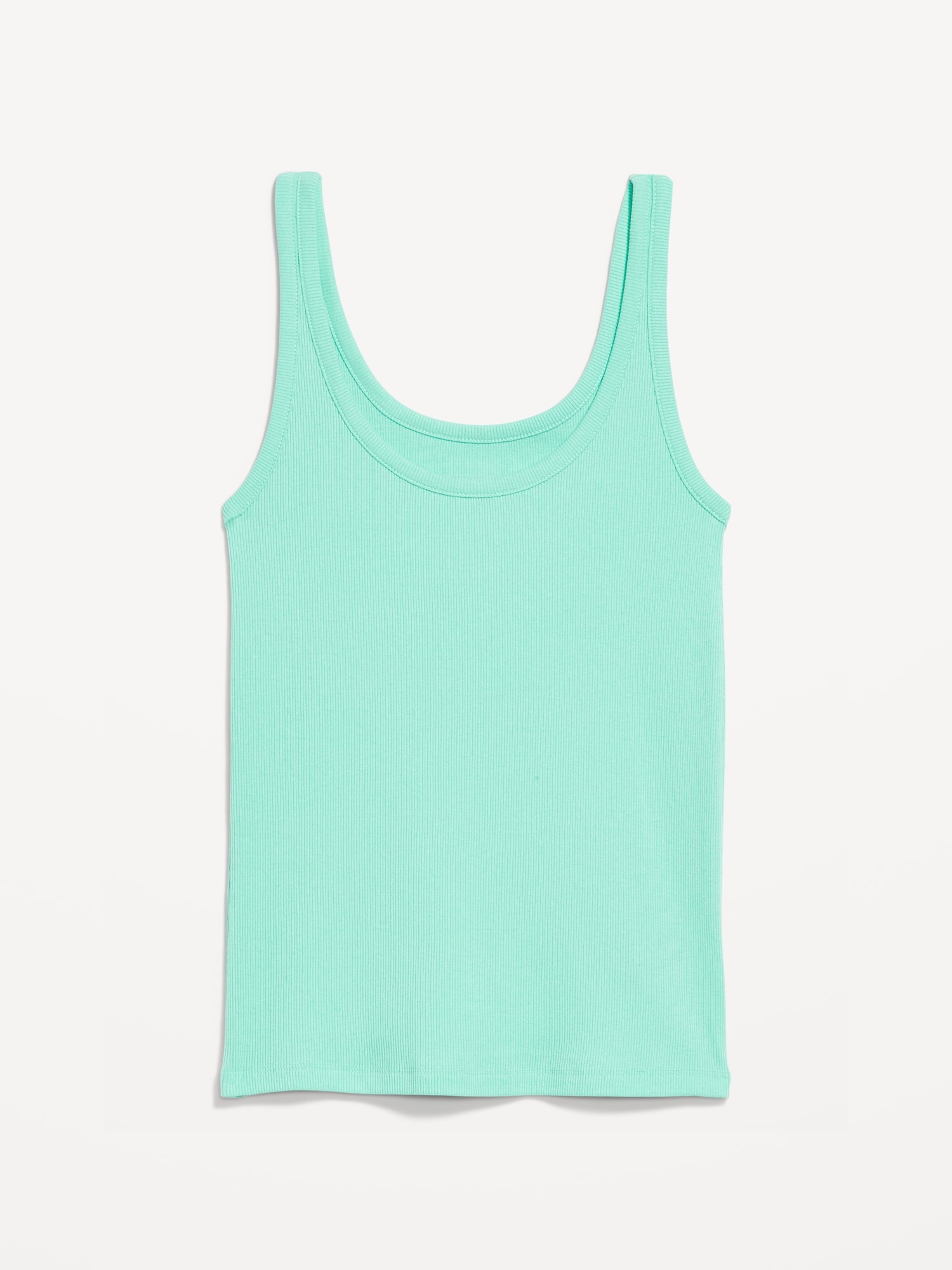 First-Layer Ribbed Scoop-Neck Tank Top: scoop neck, wide straps, #619927