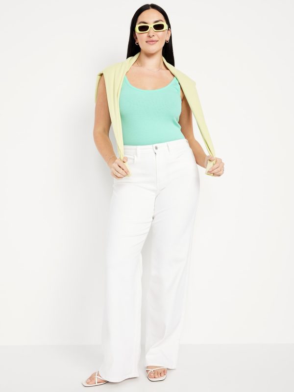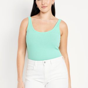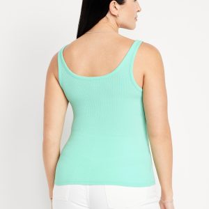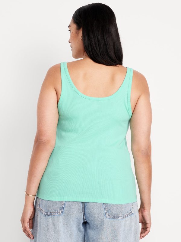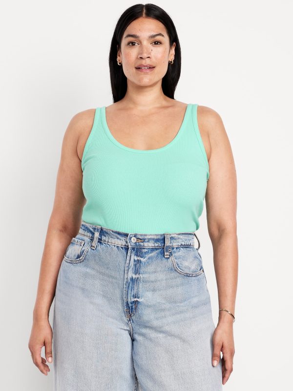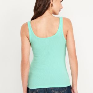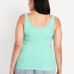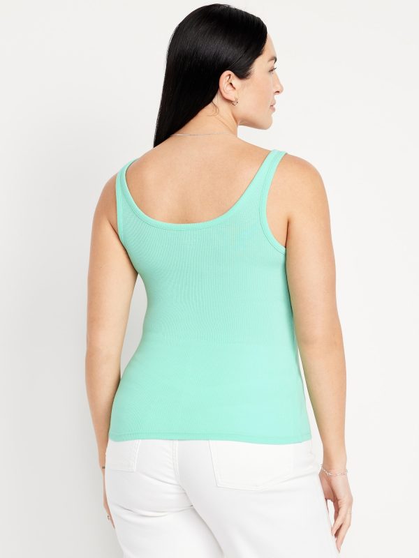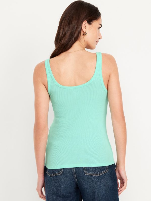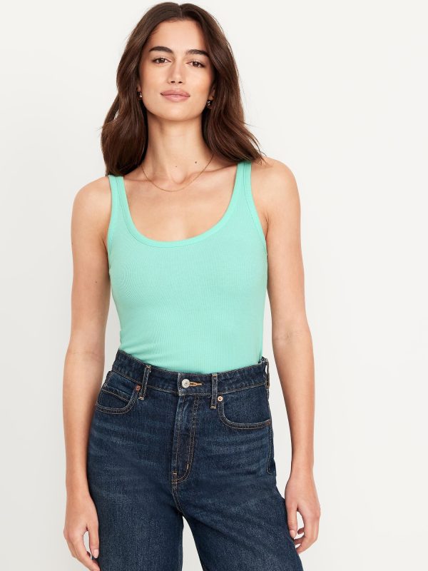 First-Layer Ribbed Scoop-Neck Tank Top: scoop neck, wide straps, #619927
