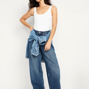 First-Layer Ribbed Scoop-Neck Tank Top: scoop neck, wide straps, #619927