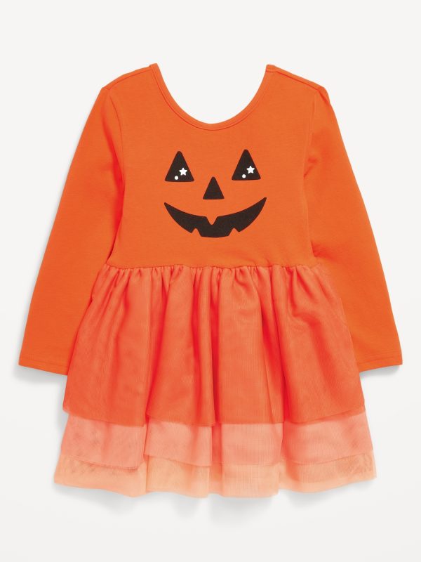 Fit and Flare Long-Sleeve Tutu Dress for Toddler Girls: scoop neck, long sleeves, deep scoop back, graphic at front, seamed ruffled waist, flared tutu skirt, lightweight tulle mesh layers, #801317