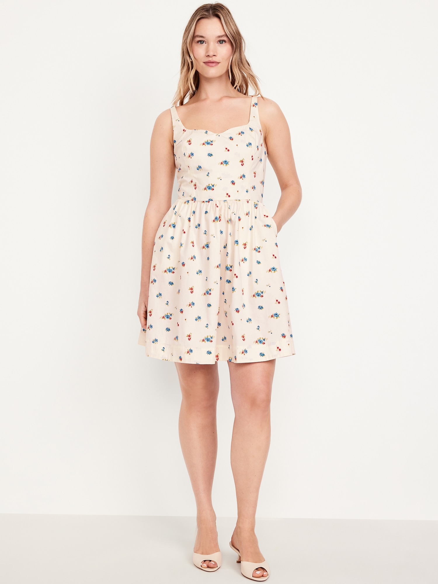 Fit & Flare Cami Mini Dress: sweetheart neckline, wide straps, smocked back, seamed waist, side-seam pockets, princess seams, mini length, #766921
