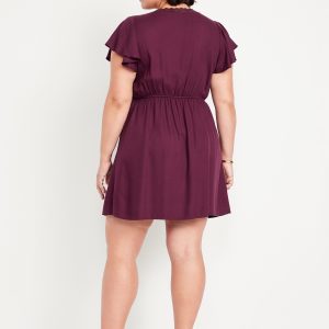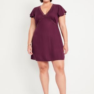 Fit & Flare Crepe Lace-Trim Mini Dress