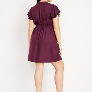 Fit & Flare Crepe Lace-Trim Mini Dress: lace-trim v-neck and bodice, short flutter sleeves, elasticized back waist, prints vary by color, #798245