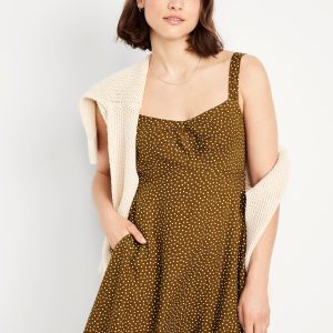 Fit & Flare Crepe Mini Dress: Our strappy fit and flare that’s an instant classic.sweetheart neckline, wide adjustable straps, on-seam pockets, smocked back, seamed waist, #798221