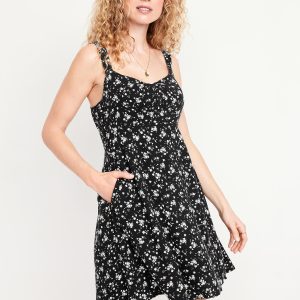Fit & Flare Crepe Mini Dress: Our strappy fit and flare that’s an instant classic.sweetheart neckline, wide adjustable straps, on-seam pockets, smocked back, seamed waist, #798221