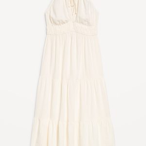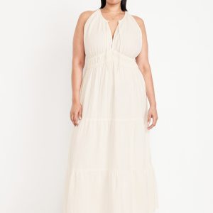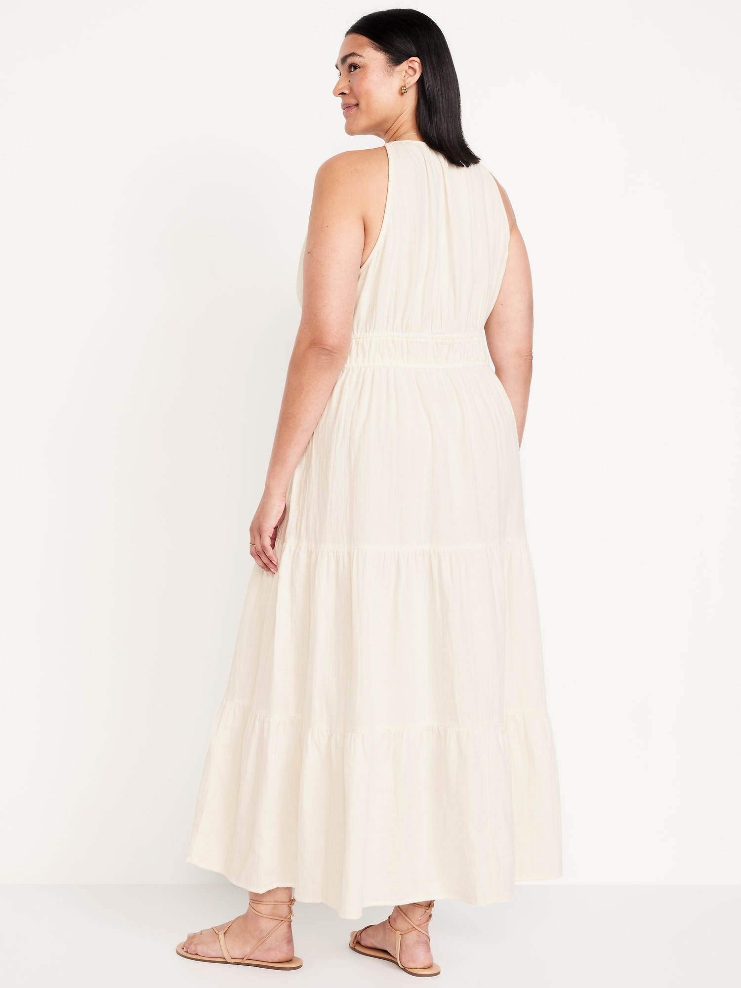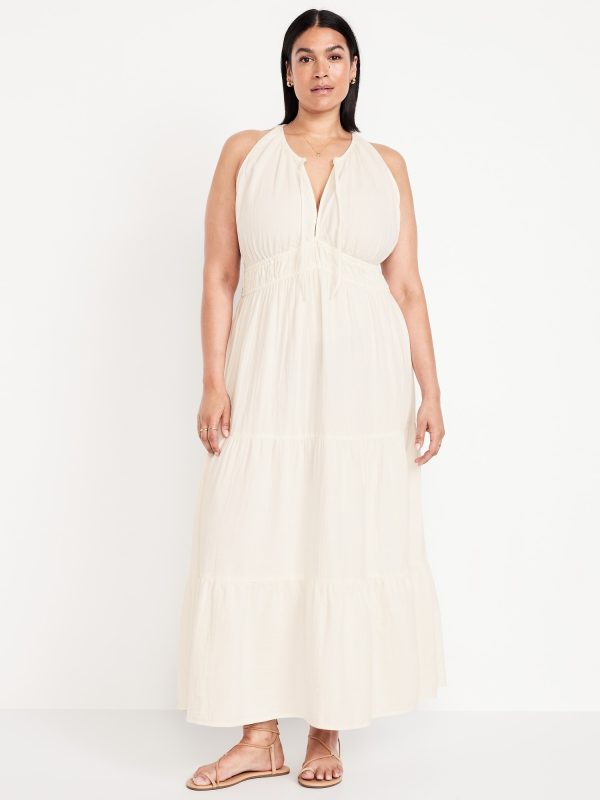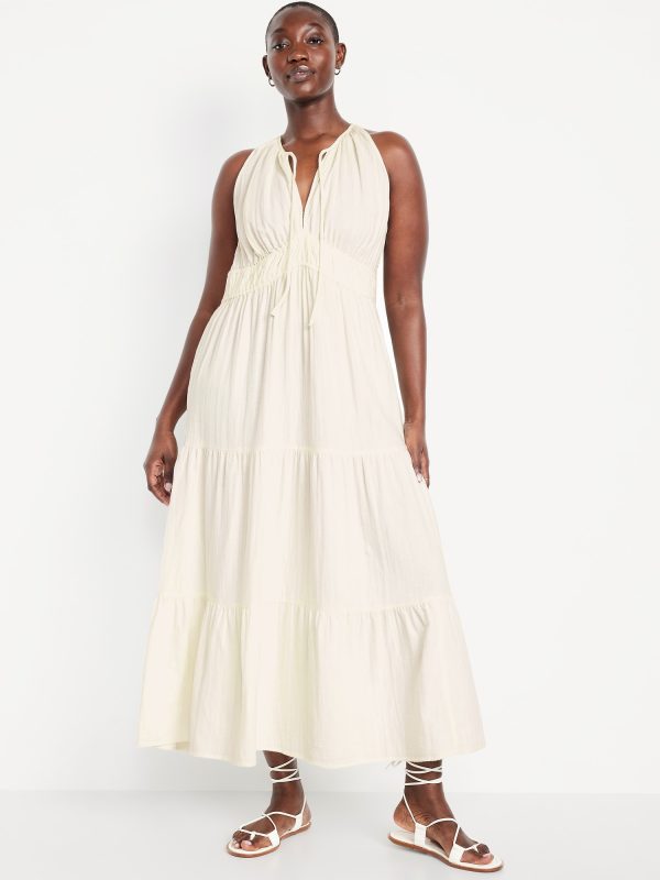 Fit & Flare Crinkle Gauze Maxi Dress: A light, rippled fabric that’s begging to be beachside.high tie-front neck, sleeveless, elasticized waist, shirred seams, #766906