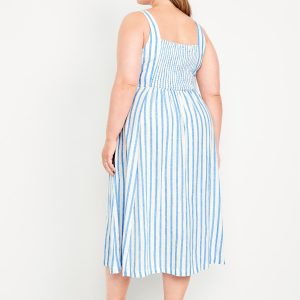 Fit & Flare Sleeveless Linen-Blend Midi Dress