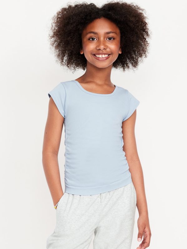 Fitted Ruched Seamless Performance Top for Girls: square neckline, short sleeves, ruching at sides, #763220