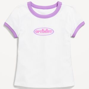 Fitted Short-Sleeve Ribbed Graphic Ringer T-Shirt for Girls