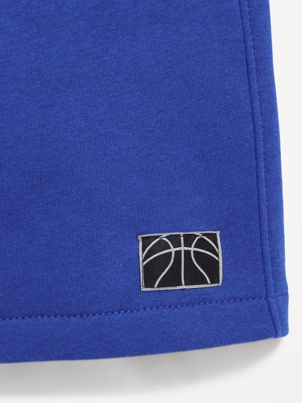 Fleece Jogger Shorts for Boys (At Knee): elasticized waistband, interior drawstring, on-seam welt pockets, #685948