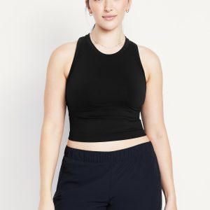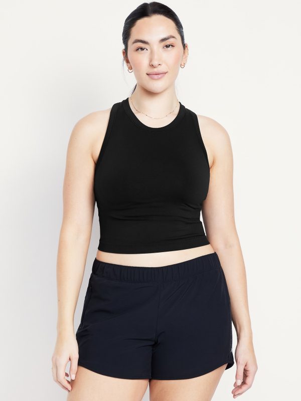 Fluid Seamless Fitted Crop Tank Top: Featuring Fluid Seamless, for breathable, barely-there feels.rib-knit panels at sides and back, crew neck, racerback, go-dry wicks moisture, #848722