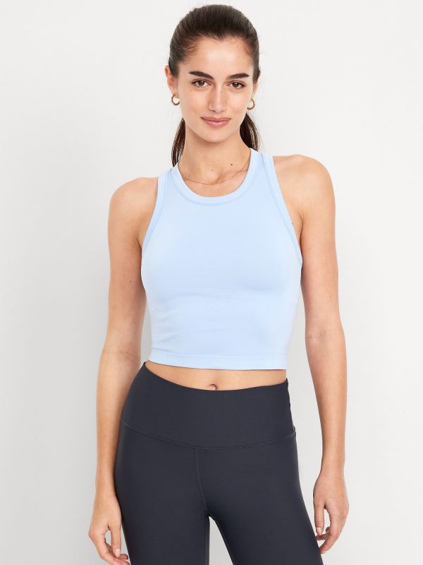 Fluid Seamless Fitted Crop Tank Top: Featuring Fluid Seamless, for breathable, barely-there feels.rib-knit panels at sides and back, crew neck, racerback, go-dry wicks moisture, #848722