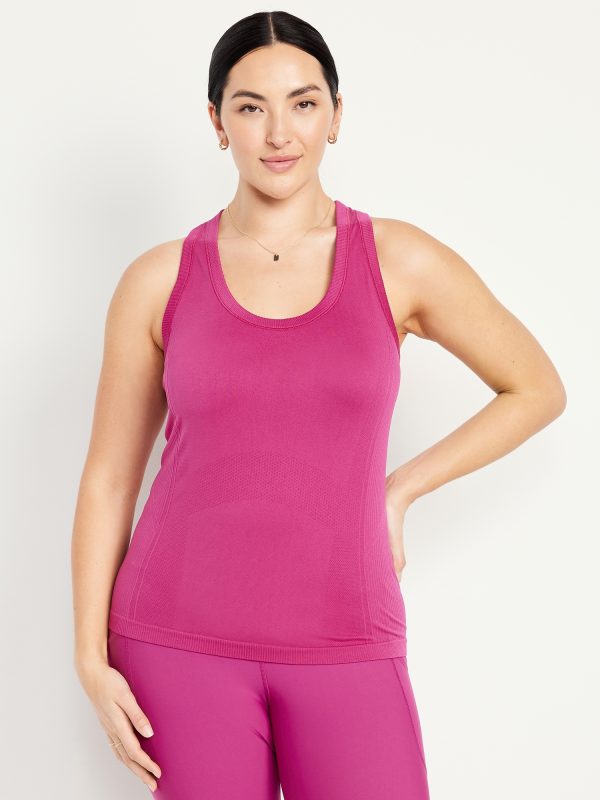 Fluid Seamless Fitted Tank Top: Featuring Fluid Seamless, for breathable, barely-there feels.rib-knit panels at sides and back, scoop neck, racerback, go-dry wicks moisture, #848693