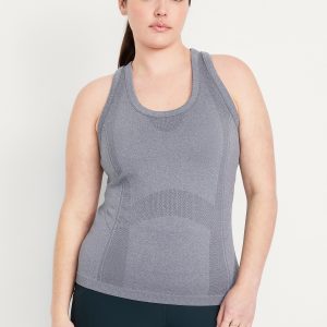 Fluid Seamless Fitted Tank Top: Featuring Fluid Seamless, for breathable, barely-there feels.rib-knit panels at sides and back, scoop neck, racerback, go-dry wicks moisture, #848693