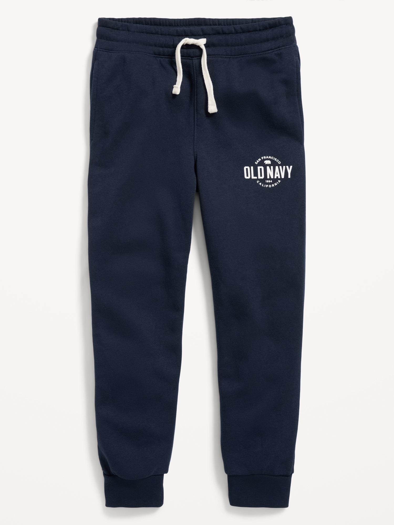 Gender-Neutral Logo-Graphic Jogger Sweatpants for Kids: elasticized waist, functional drawstring, on-seam welt pockets, banded leg cuffs, logo graphic at hip, #864789