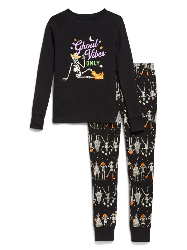 Gender-Neutral Snug-Fit Graphic Pajama Set for Kids: If you’ve got it, haunt it—in our matching jammies.crew neck, long sleeves, graphic at front, coordinating pajama pants, elasticized waistband, all-over print, #788072