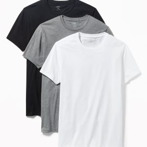 Go-Dry Crew-Neck T-Shirts 3-Pack: Pack includes 3 crew-neck tees., Rib-knit crew-neck., Short sleeves., Go-Dry moisture-wicking technology helps keep you dry and comfortable., Pieced trim inside neck for added durability., Tag-free for added comfort., Basic Multi Pack only: 100% cotton (solid colors); 60% cotton, 40% polyester (heather gray color only)., #209758