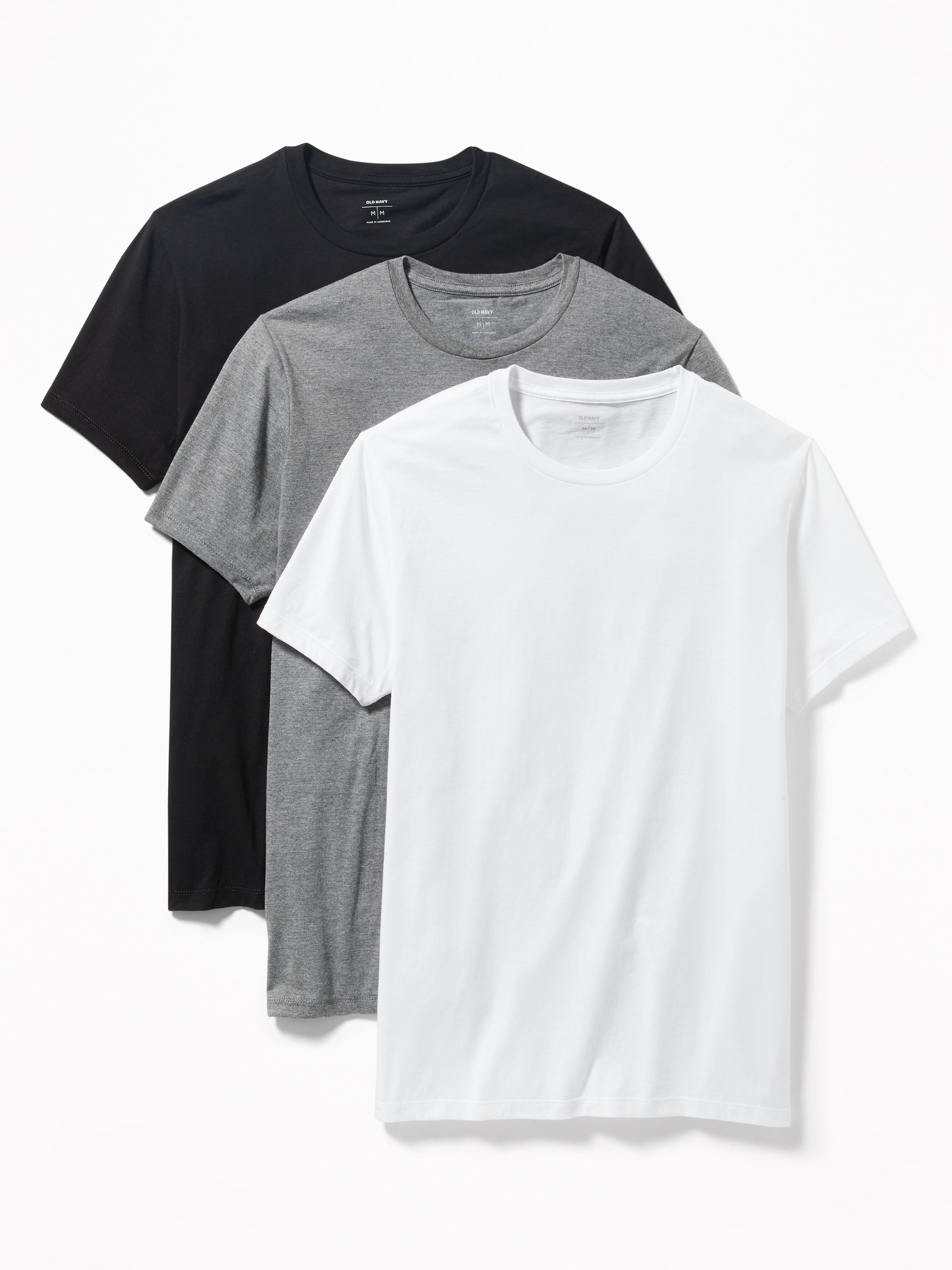Go-Dry Crew-Neck T-Shirts 3-Pack: Pack includes 3 crew-neck tees., Rib-knit crew-neck., Short sleeves., Go-Dry moisture-wicking technology helps keep you dry and comfortable., Pieced trim inside neck for added durability., Tag-free for added comfort., Basic Multi Pack only: 100% cotton (solid colors); 60% cotton, 40% polyester (heather gray color only)., #209758