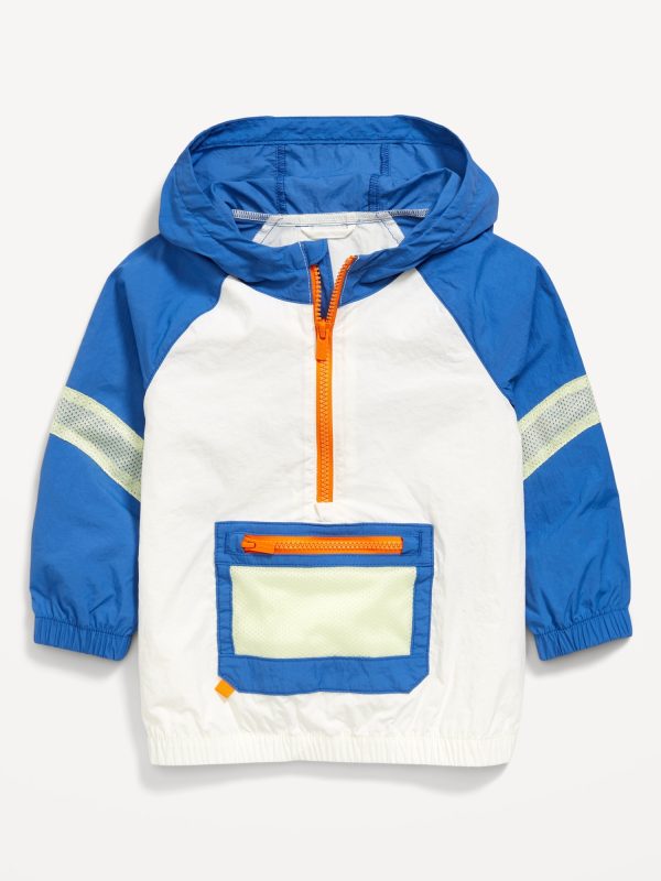 Half-Zip Mesh-Trim Hooded Jacket for Toddler Boys