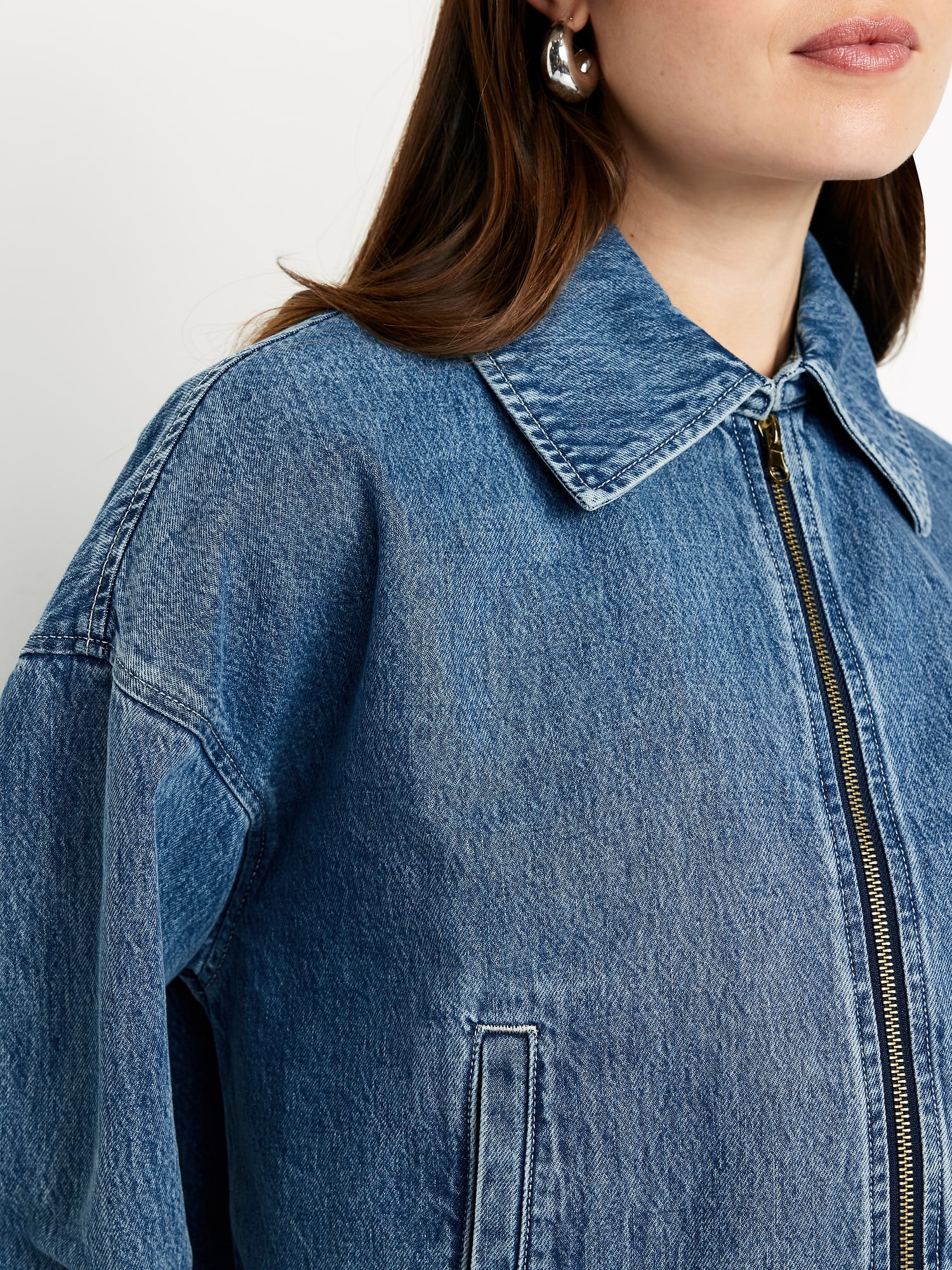 Harrington Zip Jacket: spread collar, drop-shoulder sleeves with snap cuffs, full-zip front, welt pockets, cinched hem, #790492