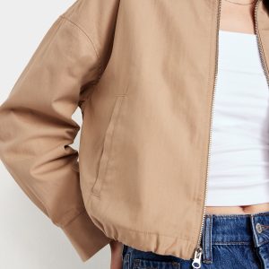 Harrington Zip Jacket: spread collar, drop-shoulder sleeves with snap cuffs, full-zip front, welt pockets, cinched hem, #790492