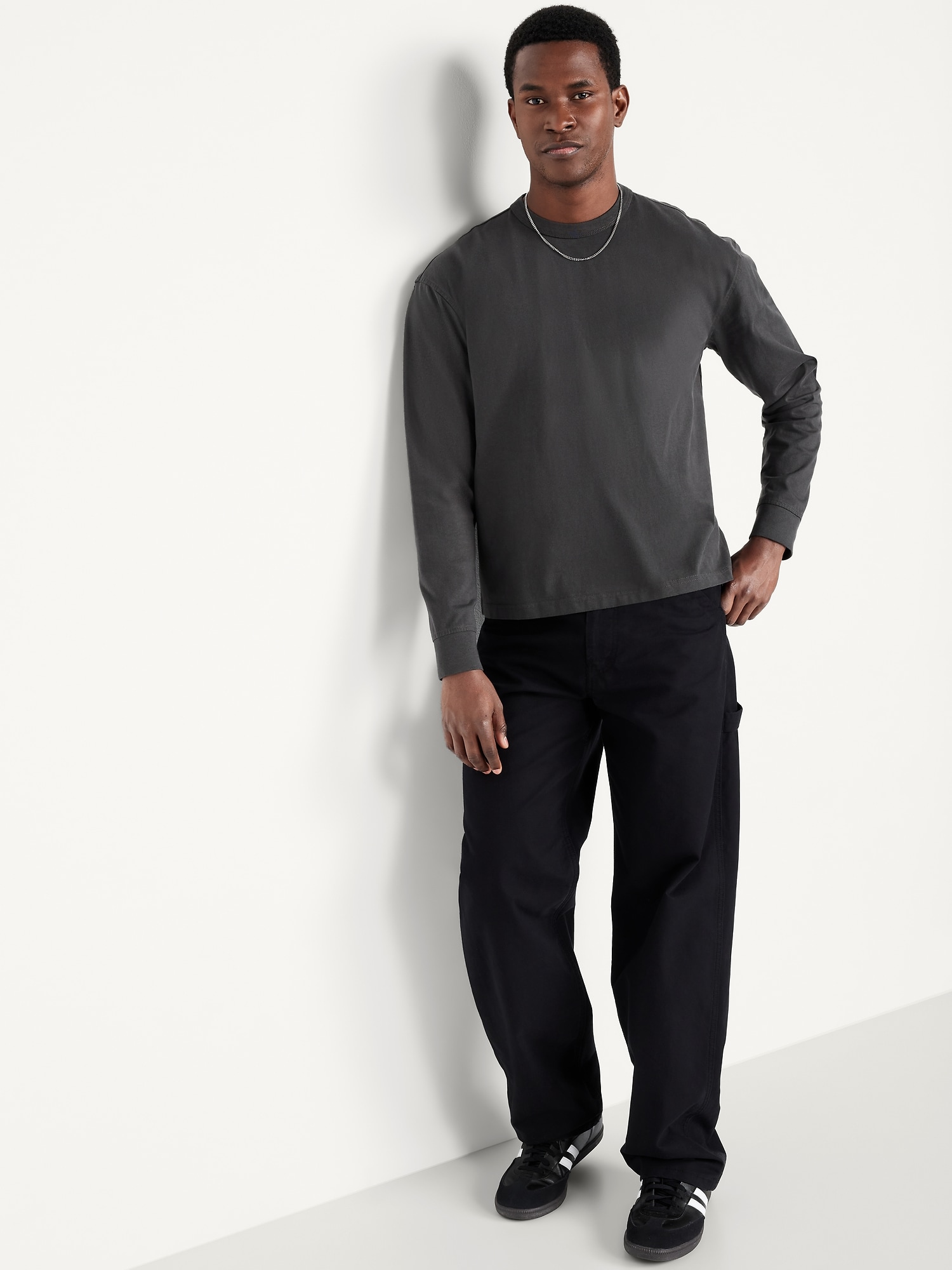 Heavyweight Cropped T-Shirt: crew neck, long sleeves, select colors have striped print, #801788