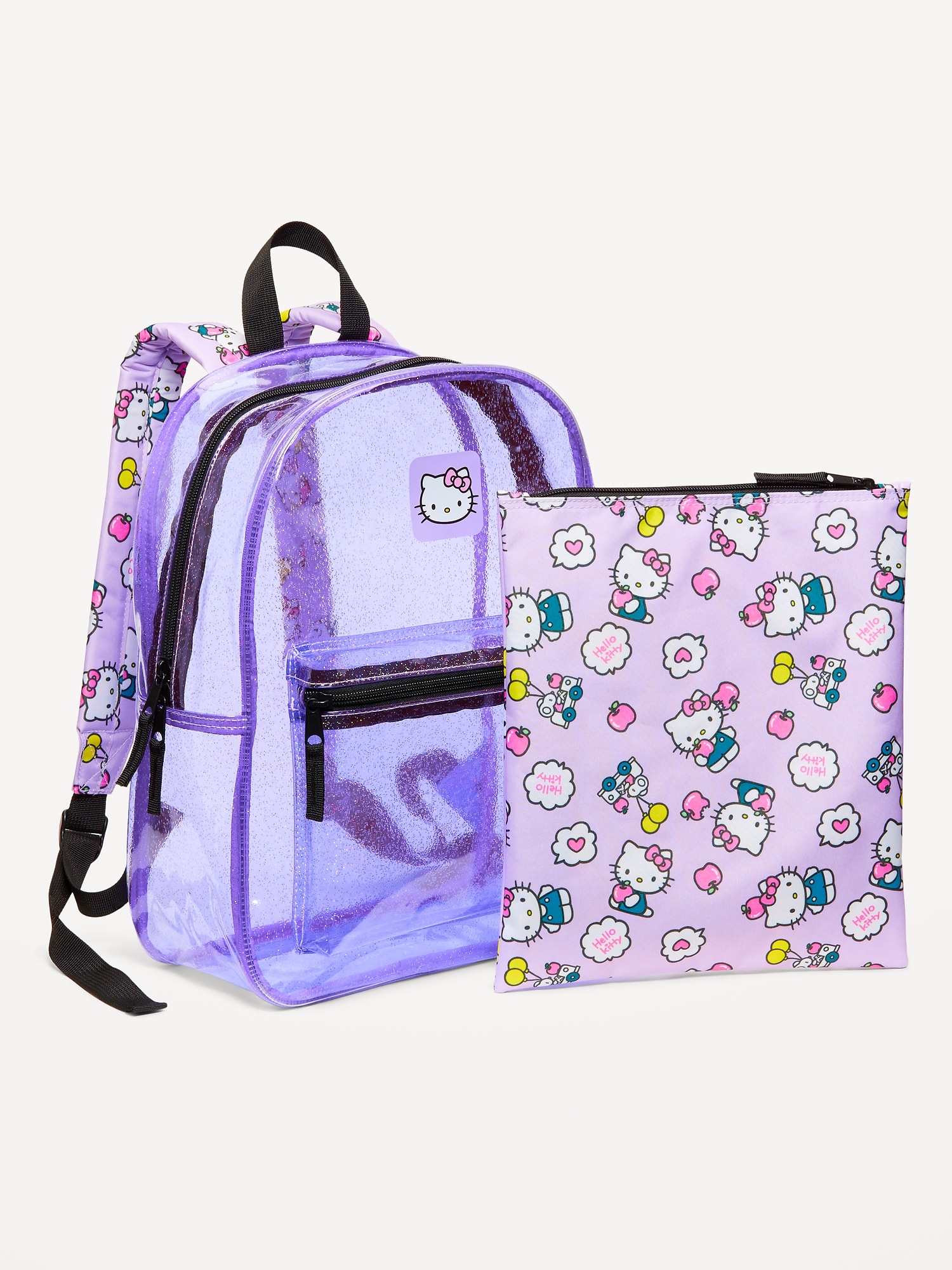 Hello Kitty® Clear Backpack for Girls: The pack that’s got their literal back.zip-top closure, canvas handle, padded shoulder straps with adjustable buckles, exterior zippered pouch compartment, removable interior sleeve compartment, © 2025 SANRIO CO. LTD. Used Under License., #762668