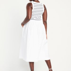 High-Waisted A-Line Midi Skirt: high elasticized waistband, side-seam pockets, striped print, #766934
